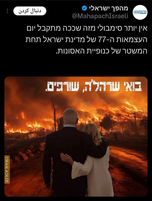 ماجرای کنایه برخی کاربران اسرائیلی به نتانیاهو چیست؟آتش سوزی گسترده در سرزمینهای اشغالی و ناتوانی در کنترل آن، همزمان با مراسم روز استقلال، منجر به تحت تاثیر قرار گرفتن این رویداد شد.
