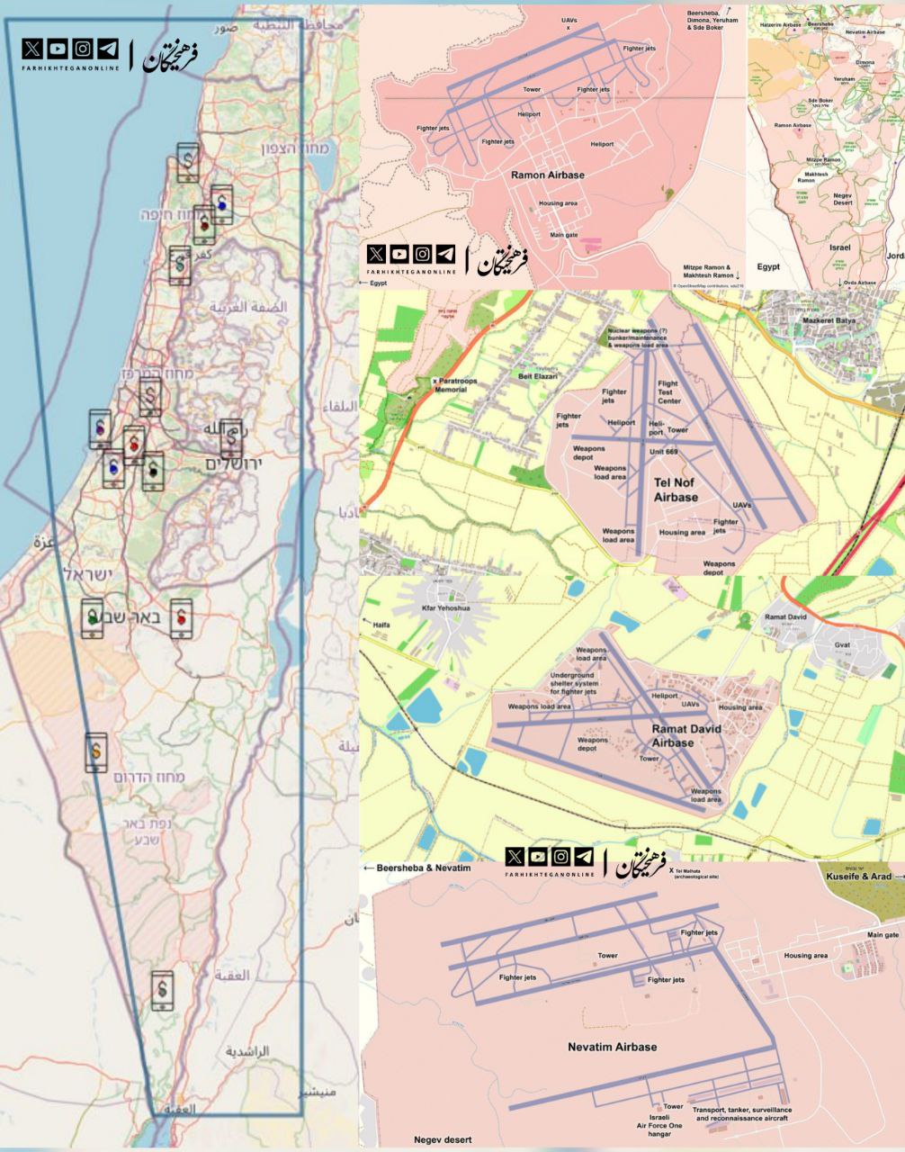 فرهیختگان آنلاین: بر اساس آنچه هکرهای ایرانی کشف کردهاند، حالا موقعیت کامل پایگاههای رژیمصهیونیستی در اختیار ایران است. این تصاویر را از گوگلمپ نخواهید دید اما جزئیات کامل آن در اختیار نیروهای ایرانی است.