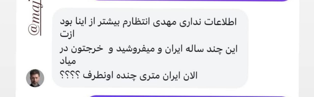 مجید واشقانی، بازیگر سینما و تلویزیون خطاب به یک مزدور خارجنشین: اطلاعات نداری مهدی، انتظارم بیشتر از اینا بود ازت. این چندساله ایرانو میفروشید و خرجتون درمیاد. الان ایران متری چنده اونطرف؟