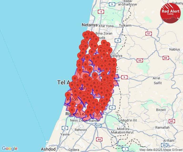 هشدارهای برخورد موشک در تلآویو فعال شد.