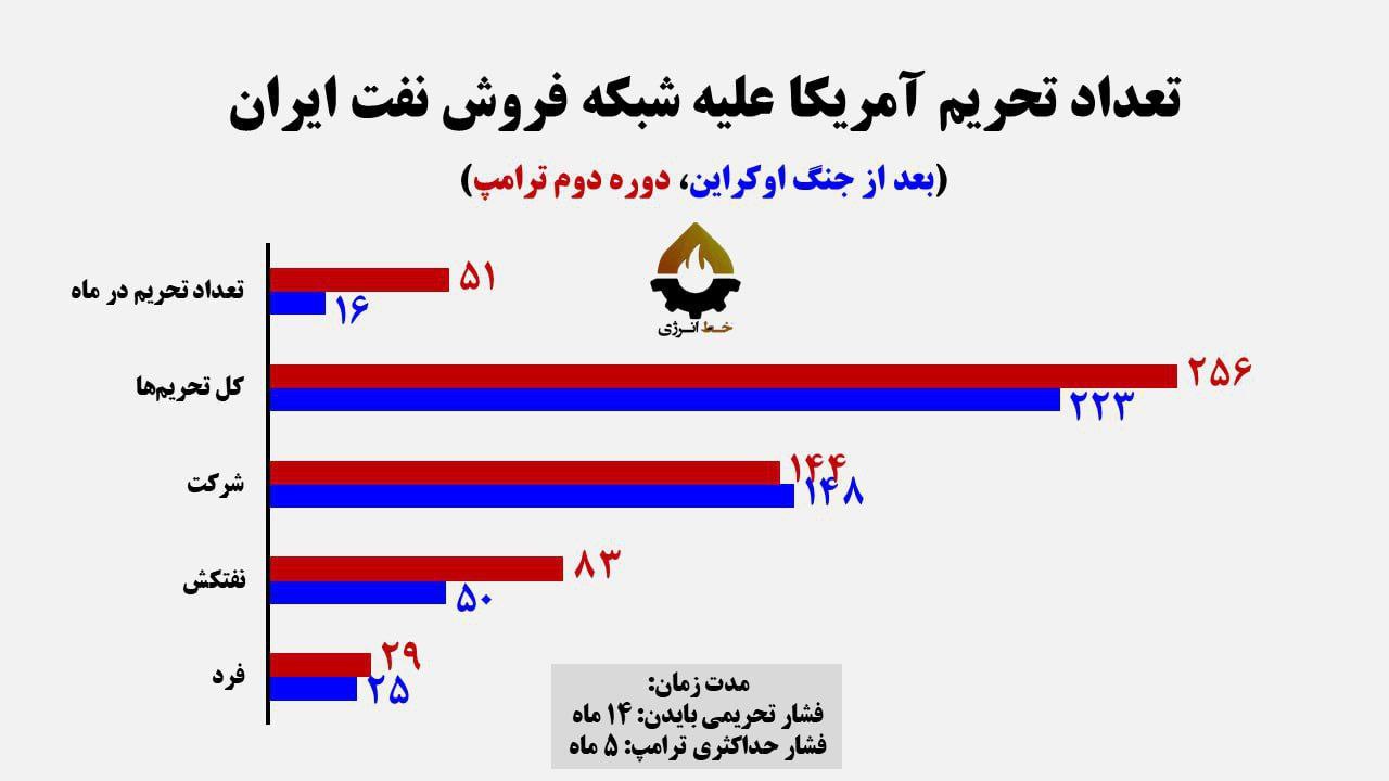 دونالد ترامپ رئیس جمهور آمریکا ادعا کرد: «من میتوانستم جلوی فروش نفت ایران را بگیرم، اما آنها برای بازسازی نیاز به پول دارند، پس بهتر است نفت را به چین بفروشند.» ادعای رئیسجمهور آمریکا یعنی روغن ریخته را نذر امامزاده کردن. او در ۱۱ بسته جدید، ۲۵۶ تحریم جدید اعمال کرد و شدت تحریم را به ۳ برابر دوره بایدن رساند.