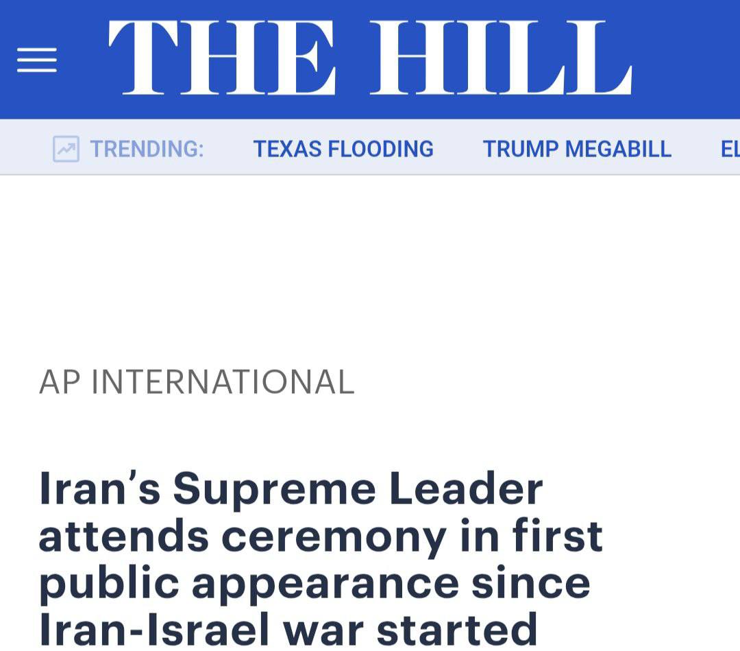 نشریه آیریش اگزمینر در این خصوص نوشت: آیتالله علی خامنهای رهبر عالی ایران، برای اولین بار از زمان آغاز جنگ ۱۲ روزه بین اسرائیل و ایران، در ملاء عام حاضر شد.