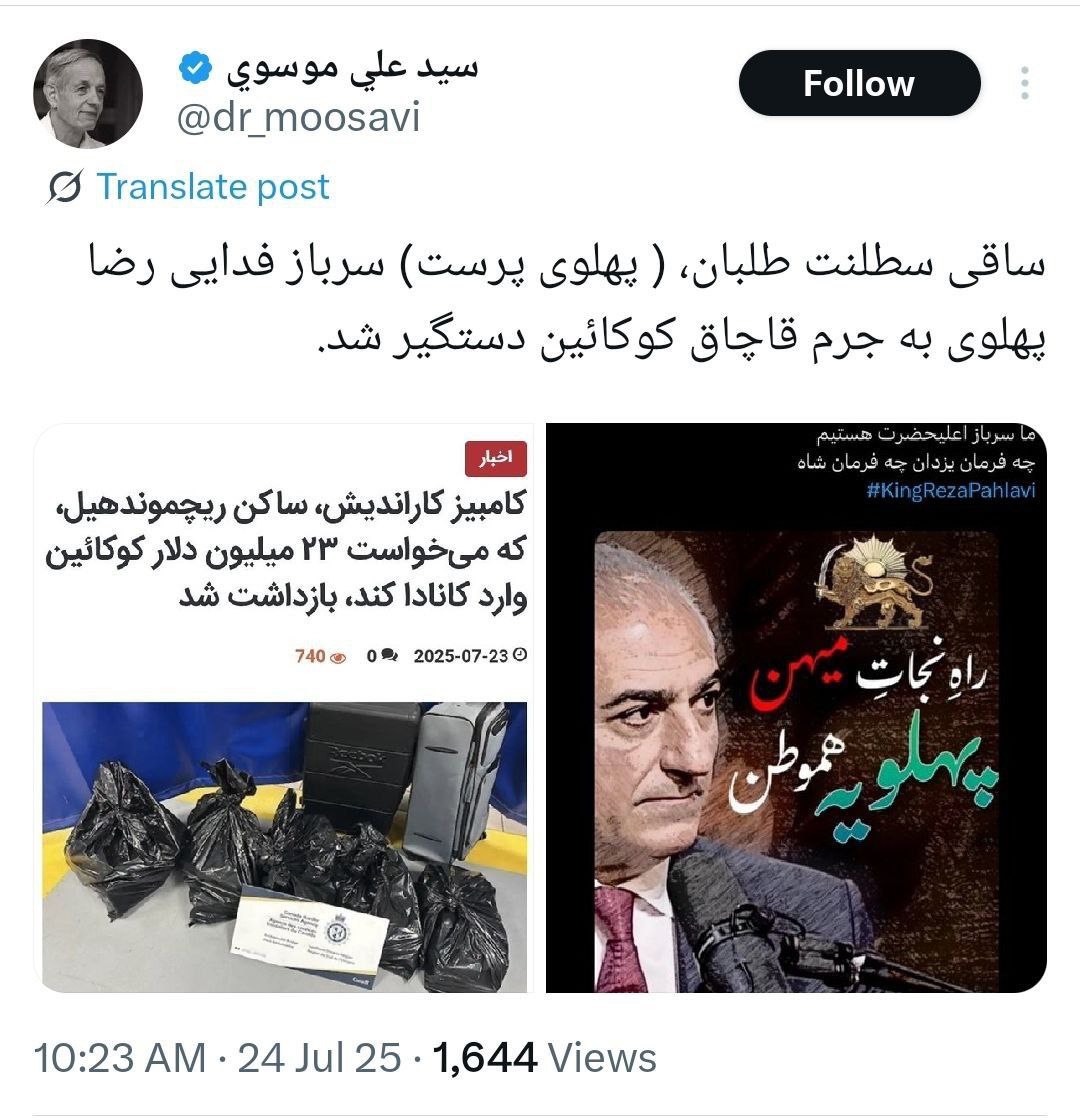 قاچاق مواد مخدر توسط چهره نزدیک به خانواده پهلوی