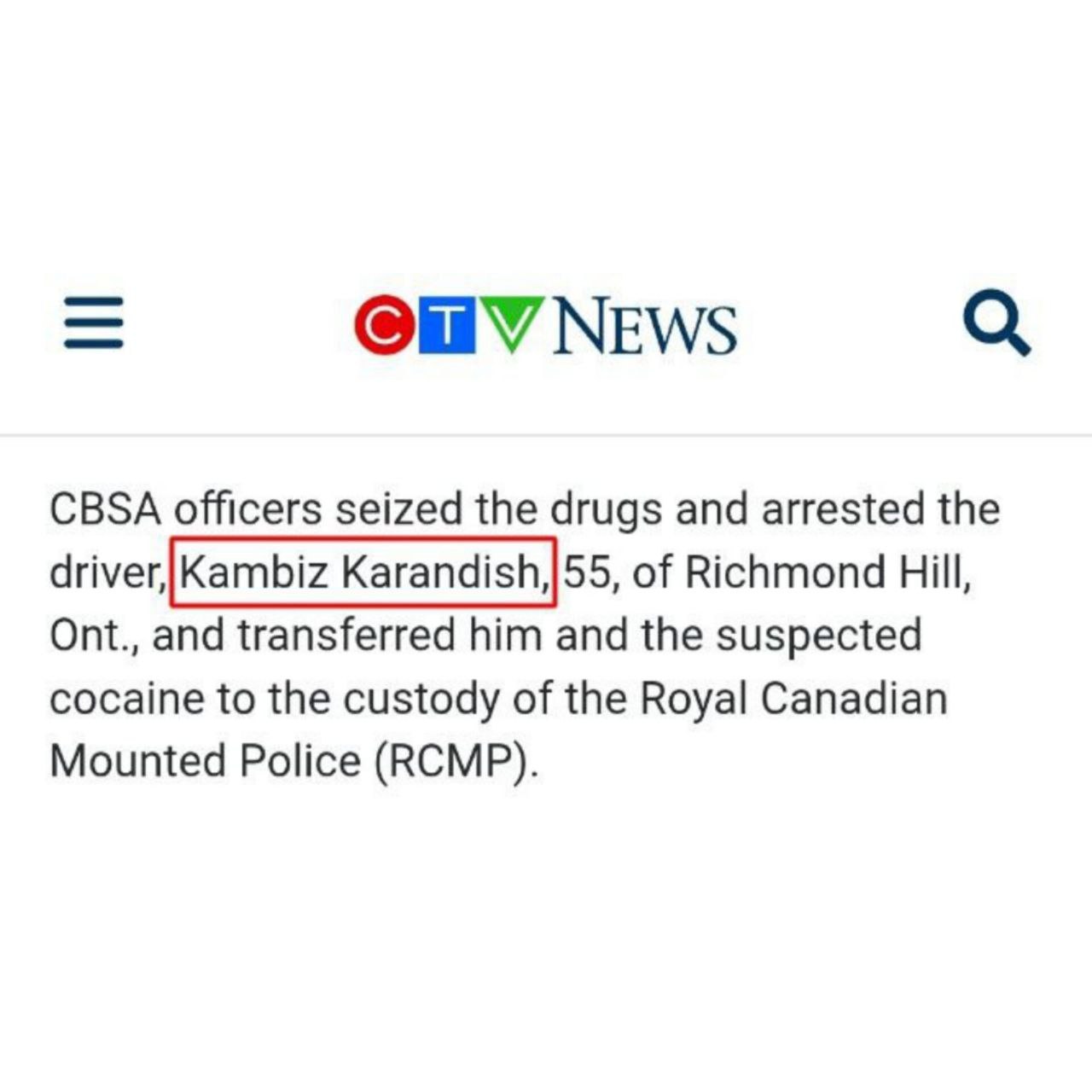 چهره نزدیک به رضا پهلوی به جرم واردات موادمخدر در کانادا دستگیر شد. برخی مقامات در این باره میگویند در بازرسی ثانویه، ۲ چمدان و ۵ کیسه زباله حاوی ۱۶۱ بسته کوکائین کشف شد.