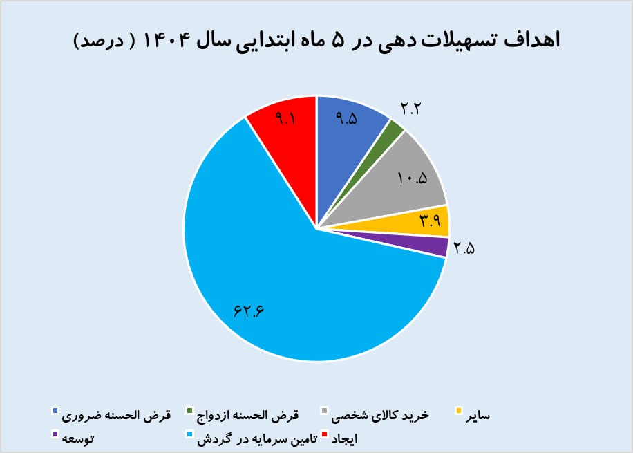 اگر تعداد خانوار ایرانی 28 میلیون در نظر گرفته شود، تقریبا طی 5 ماه نخست سال 1404، سرانه هر خانوار از تسهیلات شبکه بانکی 28 میلیون تومان بوده است. سهم خانوار از تسهیلات بانکی در 5 ماهه نخست سال گذشته 24.4 درصد گزارش شده بود. بر این اساس، تغییر خاصی در ترکیب تسهیلات دهی نسبت به سال گذشته رخ نداده است.