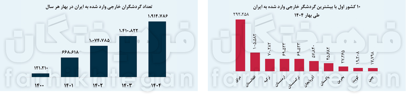 آمار سهماهۀ اول ۱۴۰۴ قابلتوجه استبا وجود چالشها و ریسکهای سیاسی و همچنین سایه تهدید جنگ، طی چهار سال اخیر ایران شاهد بیشترین تعداد گردشگران خارجی بوده است. بر اساس آمارهای رسمی، تعداد گردشگران خارجی که در فصل بهار هر سال به ایران سفر کردهاند، طی سالهای اخیر روند افزایشی چشمگیر داشته است.