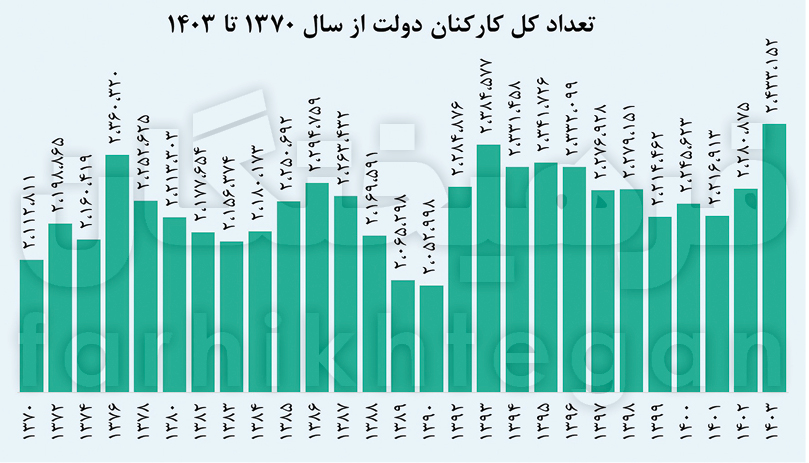 2.4 میلیون کارمند دولت 16 درصد بیشتر از سال 70