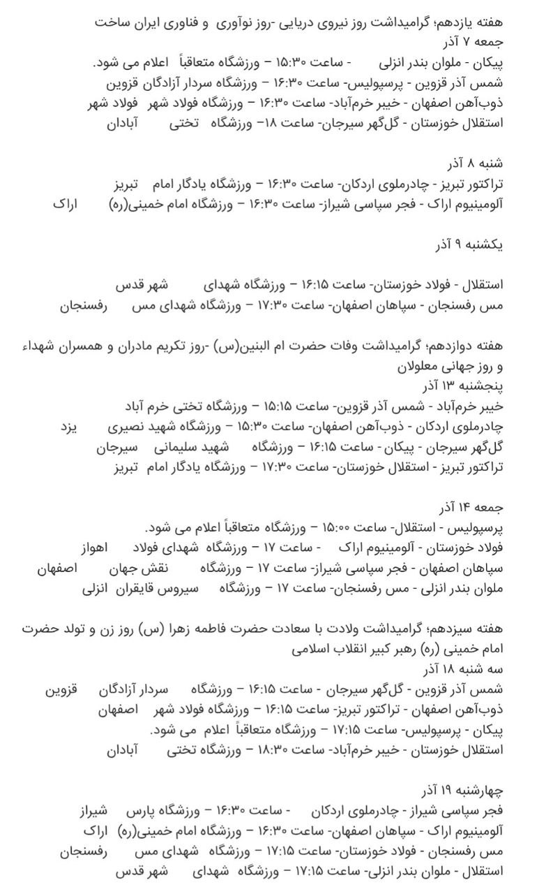 ردپای سرمربی تیم ملی در لغو سوپرکلاسیکو ایرانبرنامه مسابقات هفته دهم تا سیزدهم لیگ برتر باشگاههای فوتبال کشور فصل۱۴۰۵-۱۴۰۴ اعلام شد و بر اساس آن استقلال و پرسپولیس روز ۱۴ آذر به مصاف هم میروند.