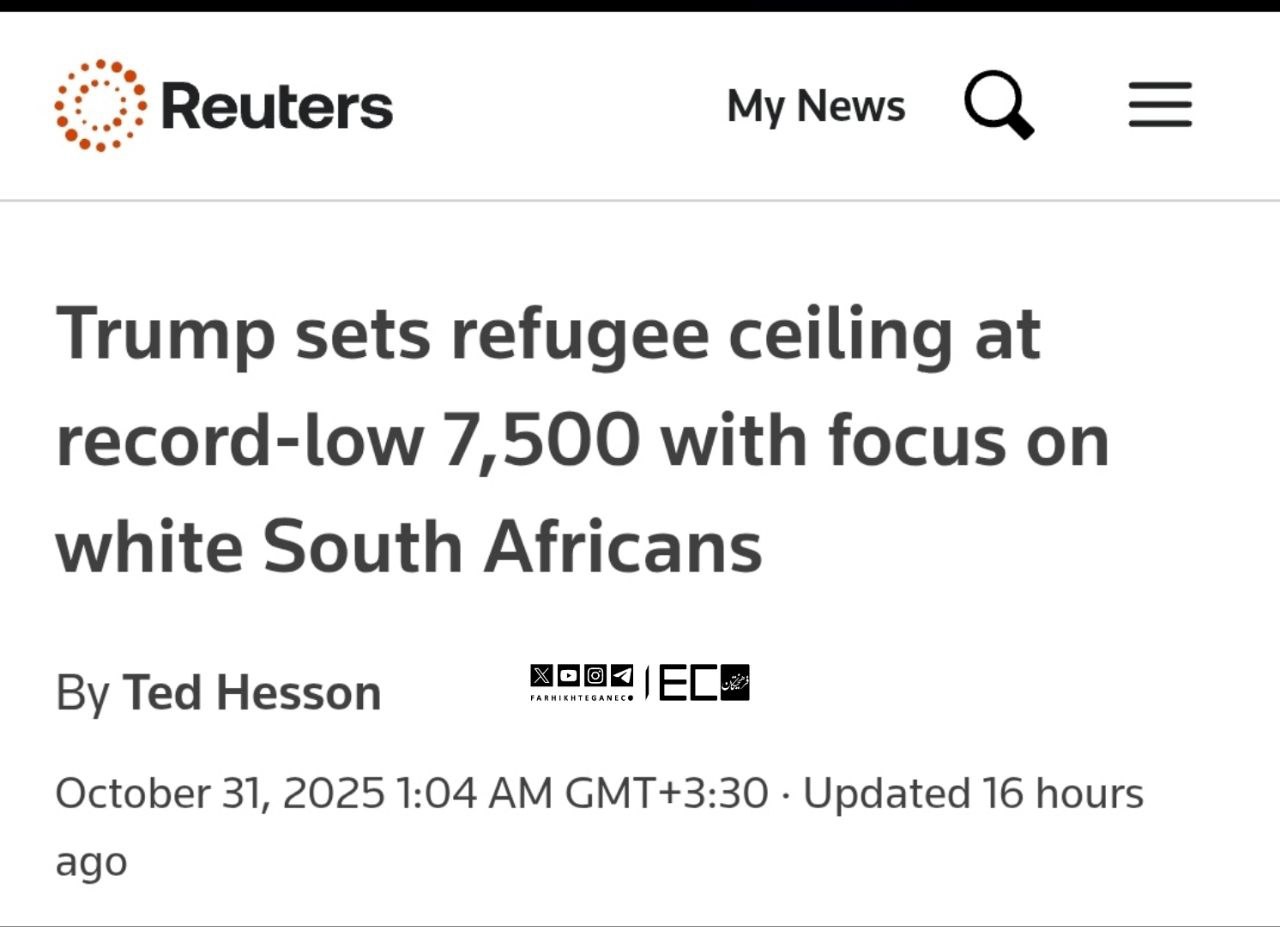 دولت دونالد ترامپ اعلام کرد: سقف پذیرش پناهجویان در سال ۲۰۲۶ به ۷۵۰۰ نفر کاهش مییابد؛ در حالیکه در دوران بایدن این رقم ۱۲۵ هزار نفر بود.