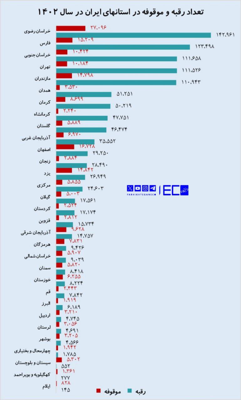 «فرهیختگان» بررسی میکندتعداد رقوبات در کشور طی ۲۵ سال اخیر ۵۴ درصد رشد داشتهاست. همچنین تعداد موقوفات در استان تهران با رشد ۱۱.۶ درصدی تنها طی یکسال به ۱۰۱۸۴ مورد رسید.