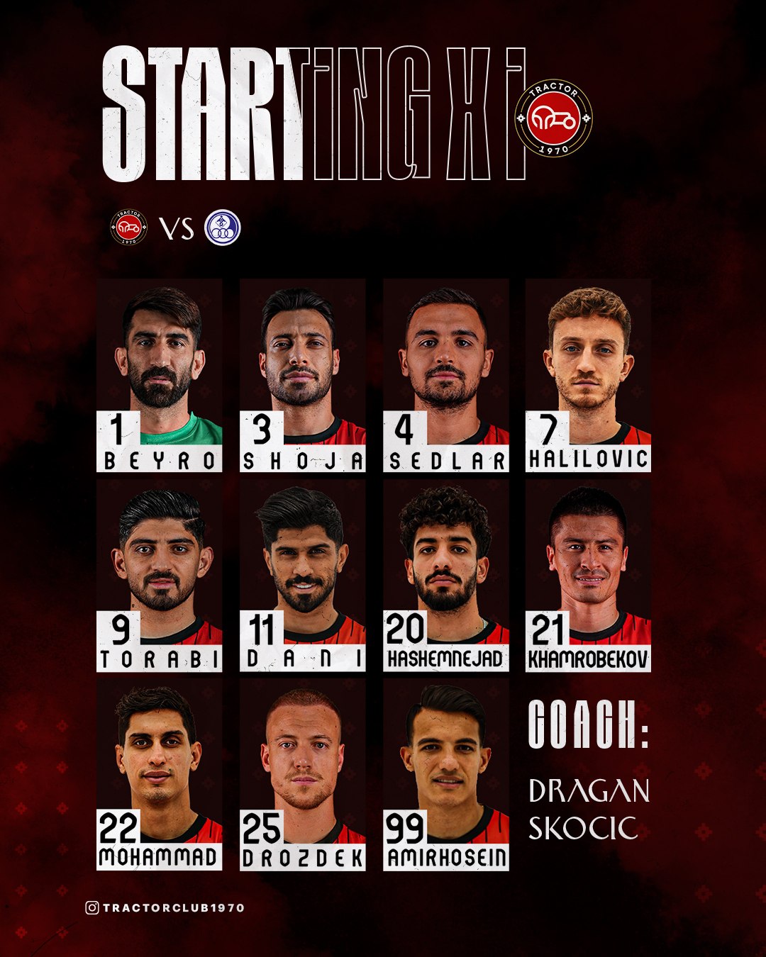 بازگشت بازیکنان به پست تخصصیترکیب تراکتور برای نبرد با استقلال خوزستان در تبریز اعلام شد و دراگان اسکوچیچ نسبت به ترکیب ابتدایی بازی قبلی با ۲ تغییر شاگردانش را روانه میدان میکند.