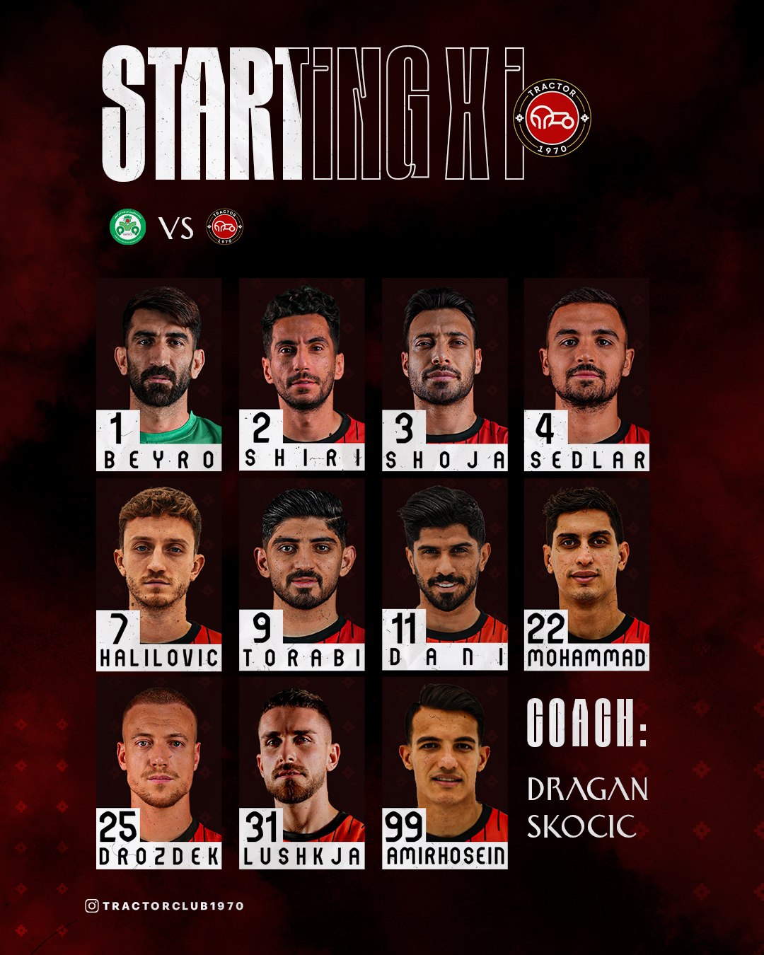 اسکوچیچ با تغییر در میانه و کناره زمین به دنبال پیروزی مقابل ذوبآهنسرمربی تراکتور نسبت به ترکیب آغازین دیدار گذشتهاش برابر آبیهای خوزستان ۲ تغییر در ترکیب قرمزها داده و لوشکیا جایگزین هاشمنژاد شده و اودیل خامربکوف از روی نیمکت بازی مهدی شیری را در میانه زمین خواهد دید.