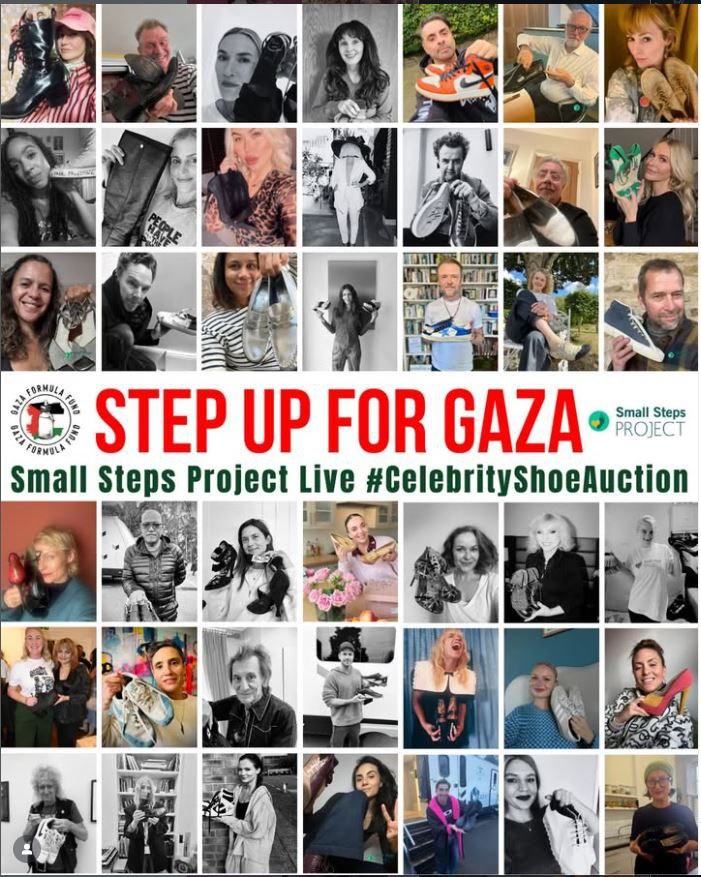 سلبریتیهای هالیوودی و اروپایی در قالب پویشی برای خرید کفش کودکان پابرهنه غزه، کفشهای خود را به حراج گذاشتند. آنان تا به حال ۱۸ هزار دلار جمع آوری کردهاند و ۱۰۰۰ جفت کفش برای بچههای مظلوم غزه کفش خریدند.