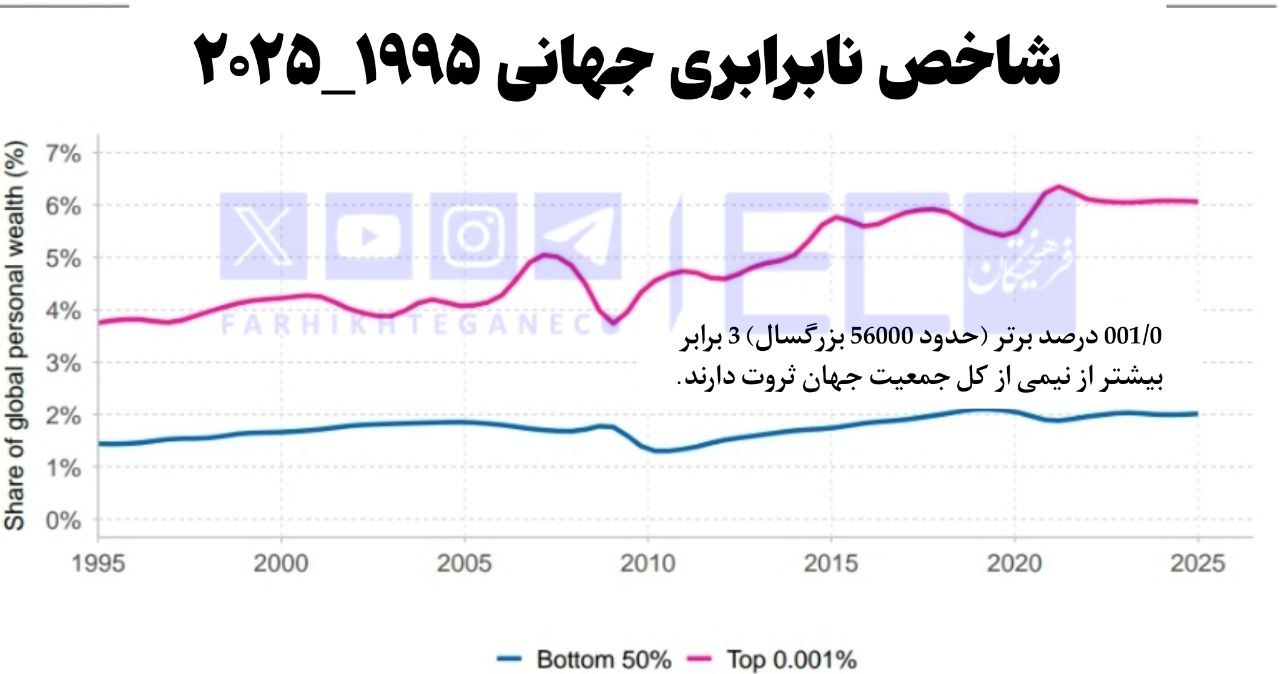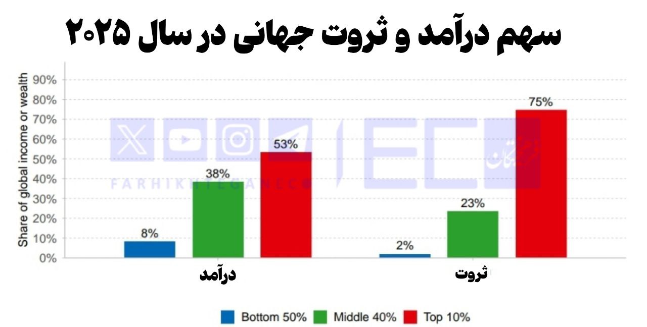 طبق بررسی فرهیختگان در سال ۲۰۲۵ مطرح شدطبق بررسی فرهیختگان در سال ۲۰۲۵، ۱۰ درصد ثروتمند جهان بیش از کل درآمد ۹۰ درصد دیگر جمعیت را دارند و نیمی از فقیرترین مردم کمتر از ۱۰ درصد از کل درآمد را در اختیار دارند.