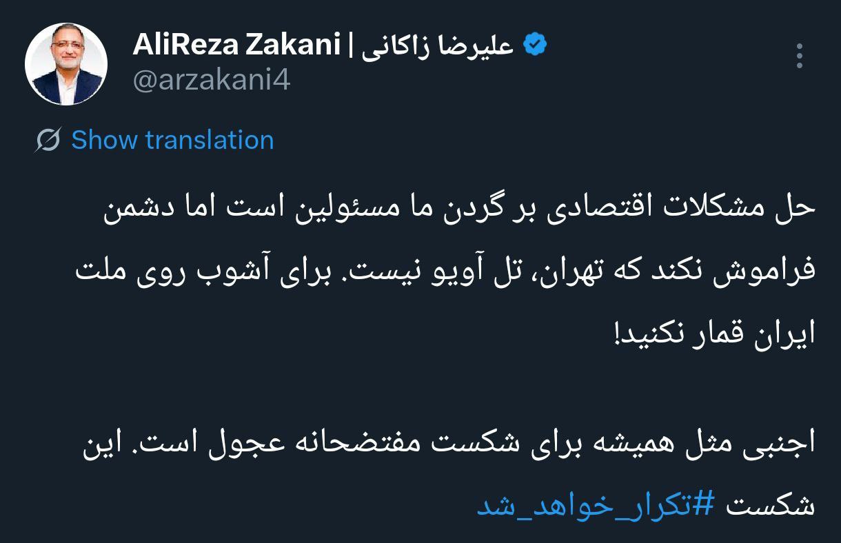 واکنش زاکانی به گزافهگوییهای ترامپ