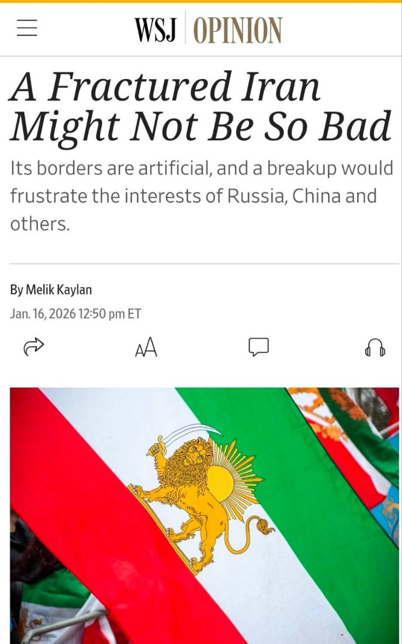 ۱.والاستریت ژورنال گفت هدف اصلی آشوب در ایران، بالکانیزه کردن و نابودی تمدن و تجزیه سرزمینی ایران است.