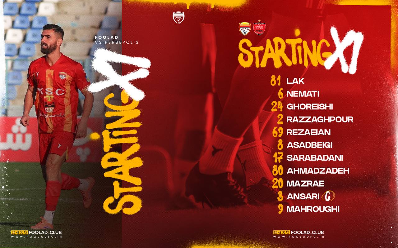 قرمزها نسبت به مسابقه گذشته 4 تغییر در ترکیب خود میبینند و ابرقویی، گرا، باکیچ و عالیشاه جای پورعلی گنجی، براجعه، سرلک و خدابندهلو را گرفتند.