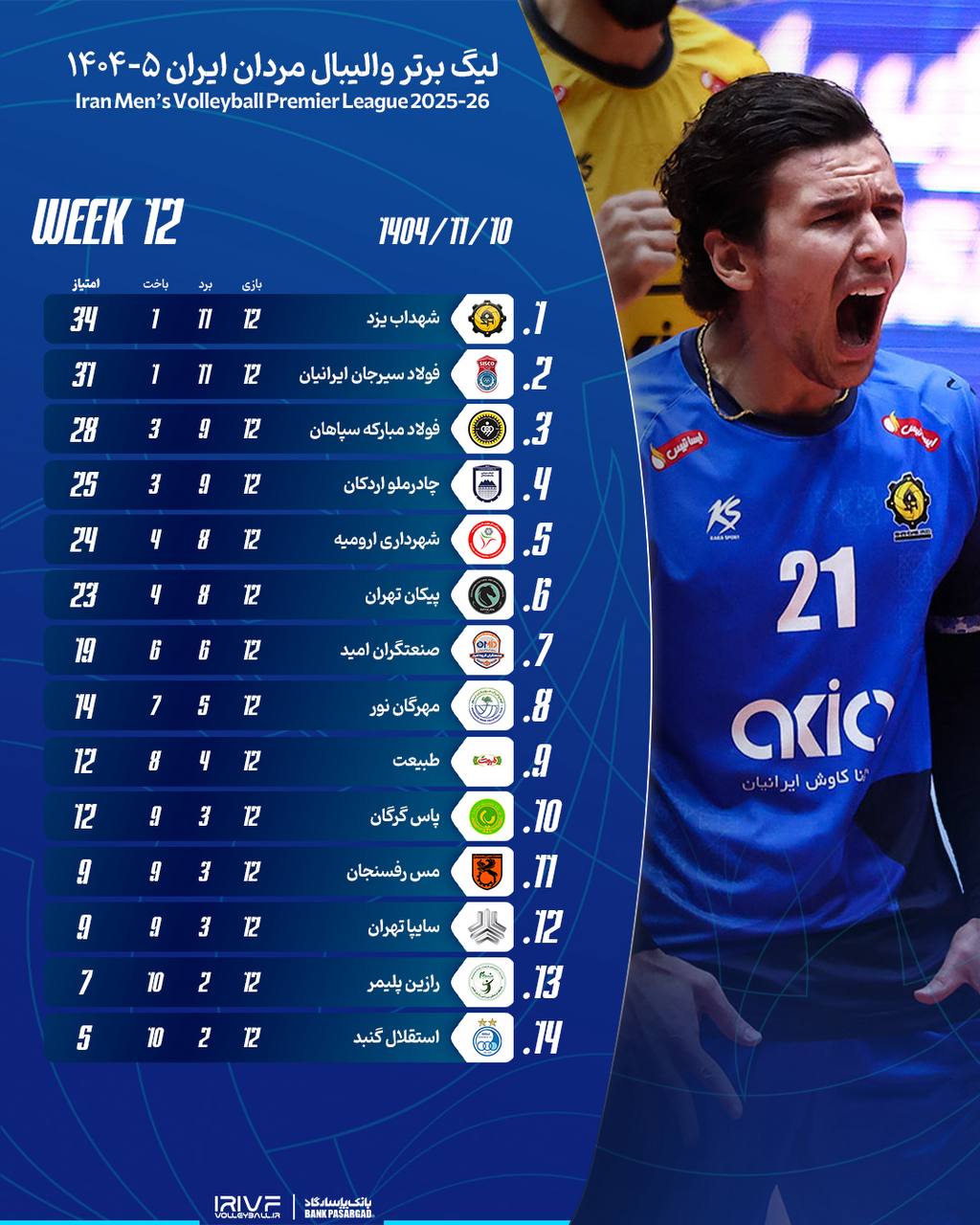 در هفته دوازدهم لیگ برتر والیبال چه گذشت؟