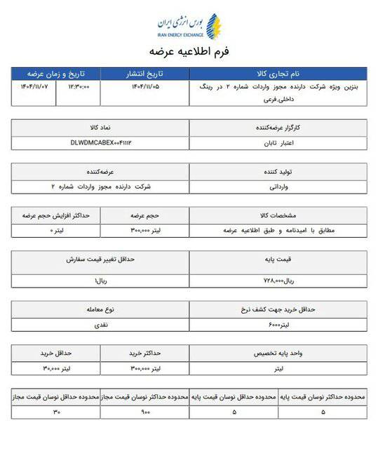 مطابق اطلاعیه جدید بورس انرژی