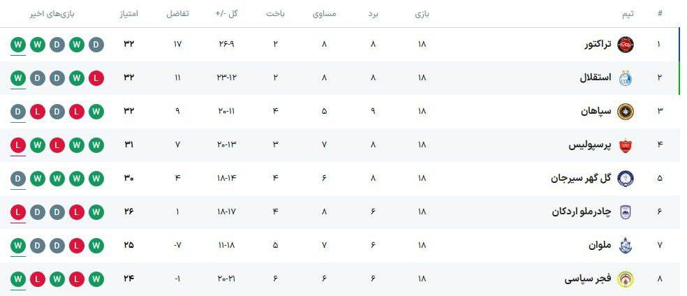 بعد از تایید رای کمیته انضباطی توسط کمیته استیناف و رد شکایت ملوان و اعمال امتیازات انضباطی استقلال و تراکتور حالا جدول شکل رسمی به خود گرفته و تراکتور و استقلال با 32 امتیاز به جایگاه اول و دوم لیگ تکیه زده‌اند. پیش از این سازمان لیگ به دلیل اعتراض ملوان به استیناف، جدول را بدون اعمال تغییرات روی خروجی سایت قرار داده بود.