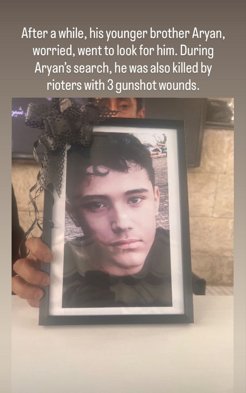 همچنین جیک گرین، فعال رسانهای بریتانیایی، در اظهاراتی جداگانه مدعی شد امیر با دو گلوله و آرین با سه گلوله جان باختهاند. او در ادامه ادعاهایی درباره نقش «آشوبگران» و نیز سازماندهی ناآرامیها از سوی سرویسهای اطلاعاتی خارجی مطرح کرد.