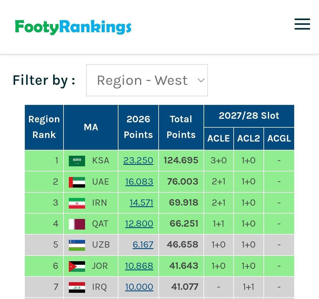 مجموع امتیازات ایران در جدیدترین رده‌بندی فوتبال آسیا، ۶۹.۹۱۸ است که به دلیل اختلاف بیش از ۳ امتیاز که با فوتبال قطر (۶۶.۲۵۱ امتیاز) ایجاد شده، فعلا سهمیه ما در لیگ نخبگان برای فصل ۲۰۲۸-۲۰۲۷ همان ۱+۲ است.