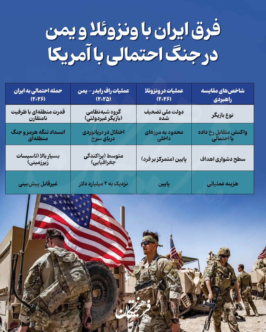 تمایز ساختاری ایران با ونزوئلا و یمن، در کنار سایه سنگین شکستهای تاریخی در عراق و افغانستان، باعث شده است که پنتاگون به شدت نسبت به عواقب غیرقابل کنترل هرگونه ماجراجویی جدید هشدار دهد. اگر واشینگتن نتواند میان «بازدارندگی» و «تجاوز نظامی» توازن برقرار کند، ممکن است خود را در مرکز بحرانی بیابد که نه تنها خاورمیانه، بلکه نظم جهانی و جایگاه ایالات متحده به عنوان یک ابرقدرت را به لرزه درآورد. ایران امروز، به گفته جبهه مقاومت، نه یک بازیگر در حال فروپاشی، بلکه قدرتی است که آمادگی دارد تا در صورت حمله، نبرد را به منطقه بکشاند و هزینههایی را تحمیل کند که برای هیچ سیاستگذاری در واشینگتن قابل تحمل نخواهد بود.
