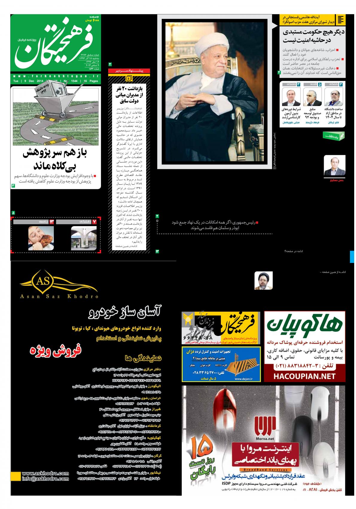 سه شنبه ۱۸ آذر ۱۳۹۳