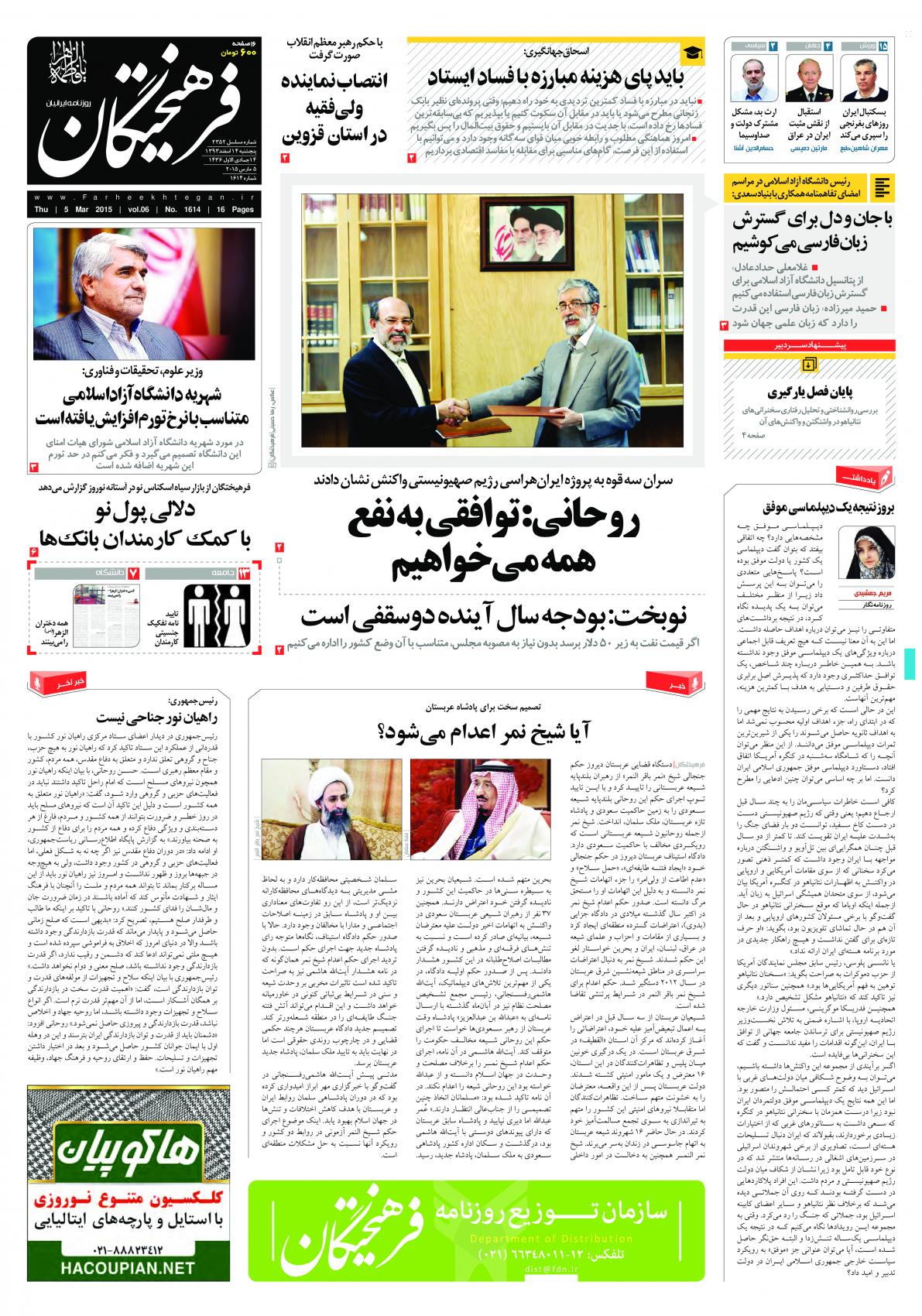 پنجشنبه ۱۴ اسفند ۱۳۹۳