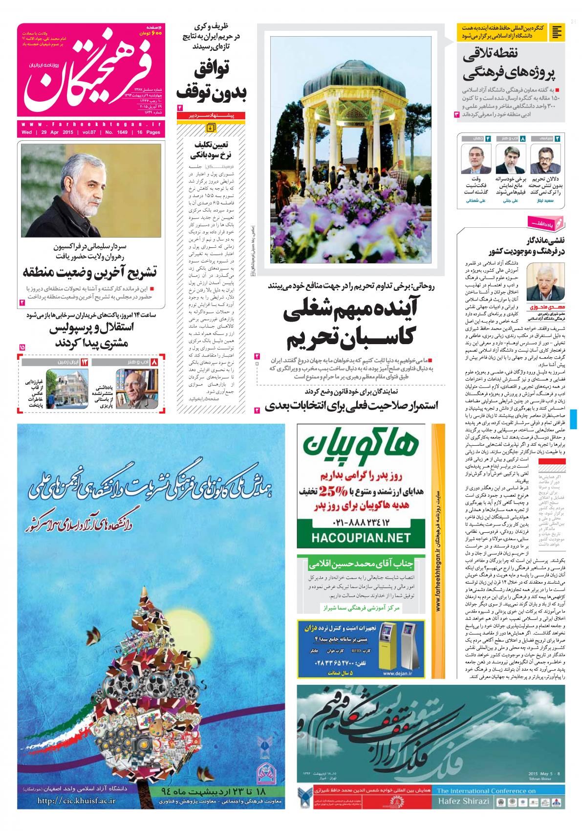 چهارشنبه ۰۹ اردیبهشت ۱۳۹۴