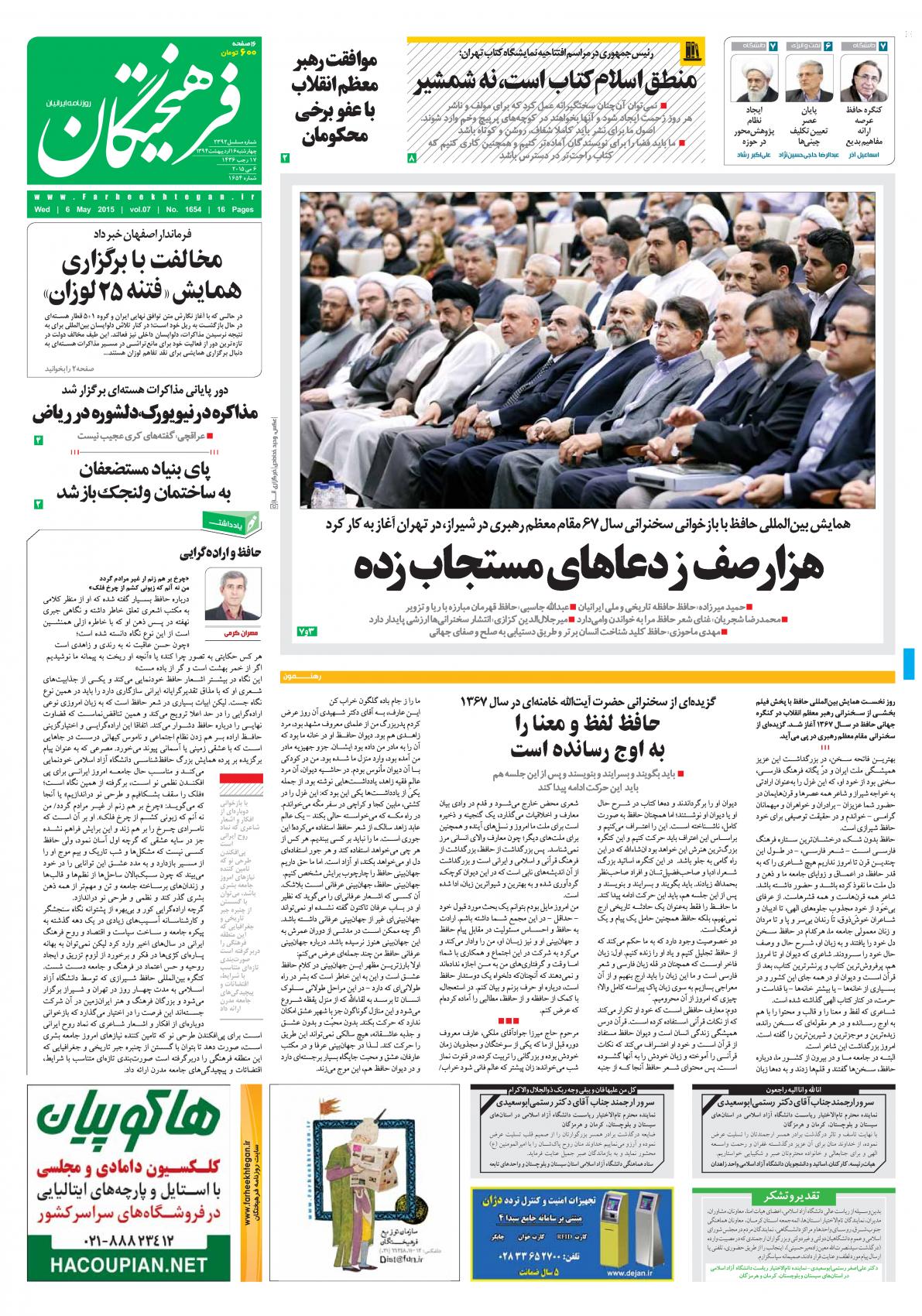 چهارشنبه ۱۶ اردیبهشت ۱۳۹۴