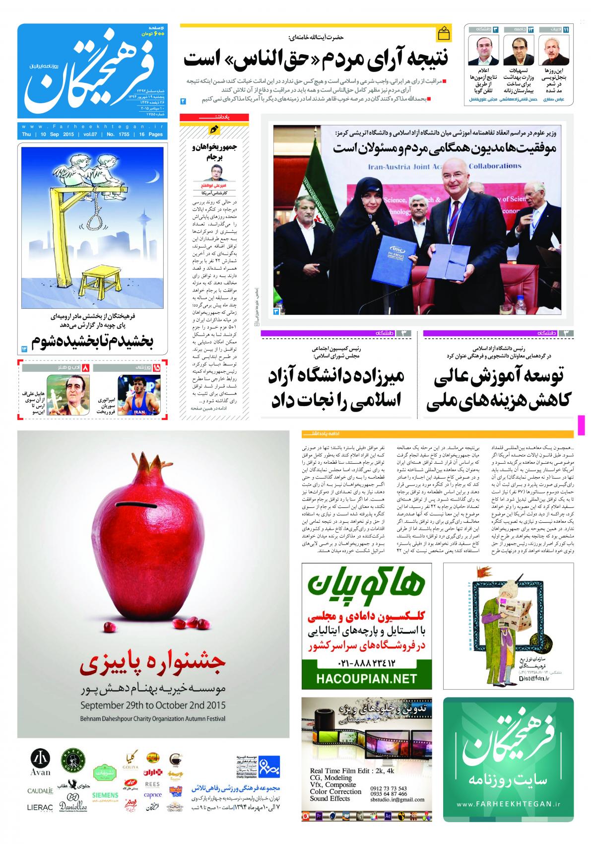 پنجشنبه ۱۹ شهریور ۱۳۹۴