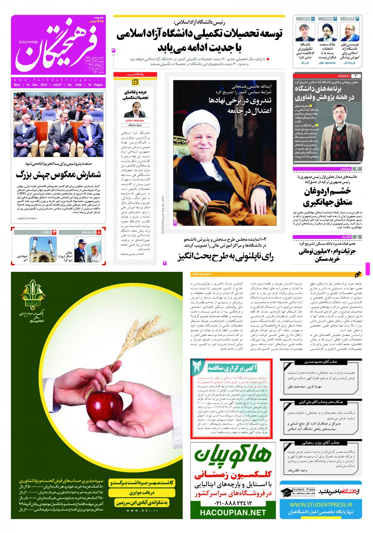 دوشنبه ۲۳ آذر ۱۳۹۴