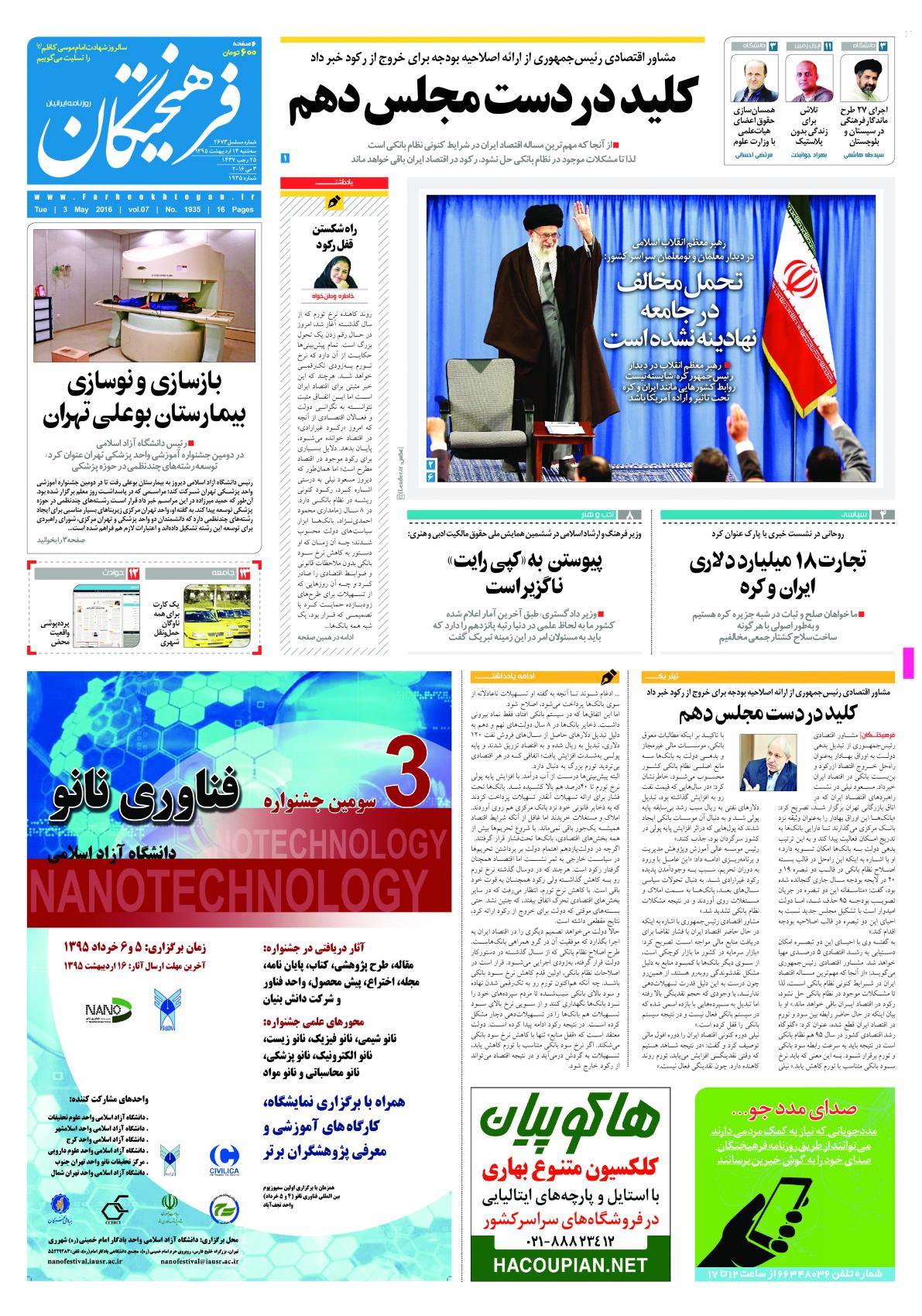 سه شنبه ۱۴ اردیبهشت ۱۳۹۵