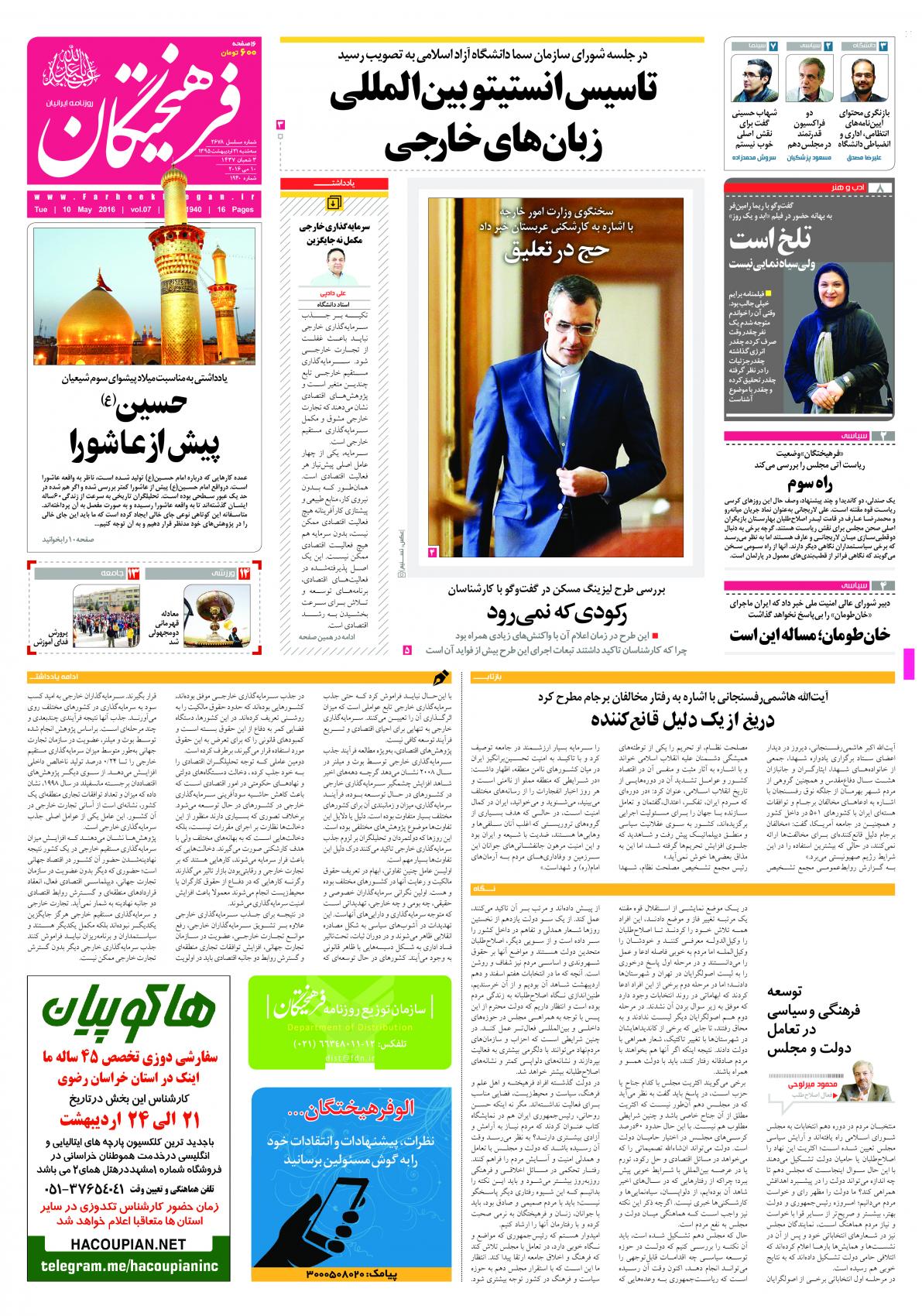 سه شنبه ۲۱ اردیبهشت ۱۳۹۵