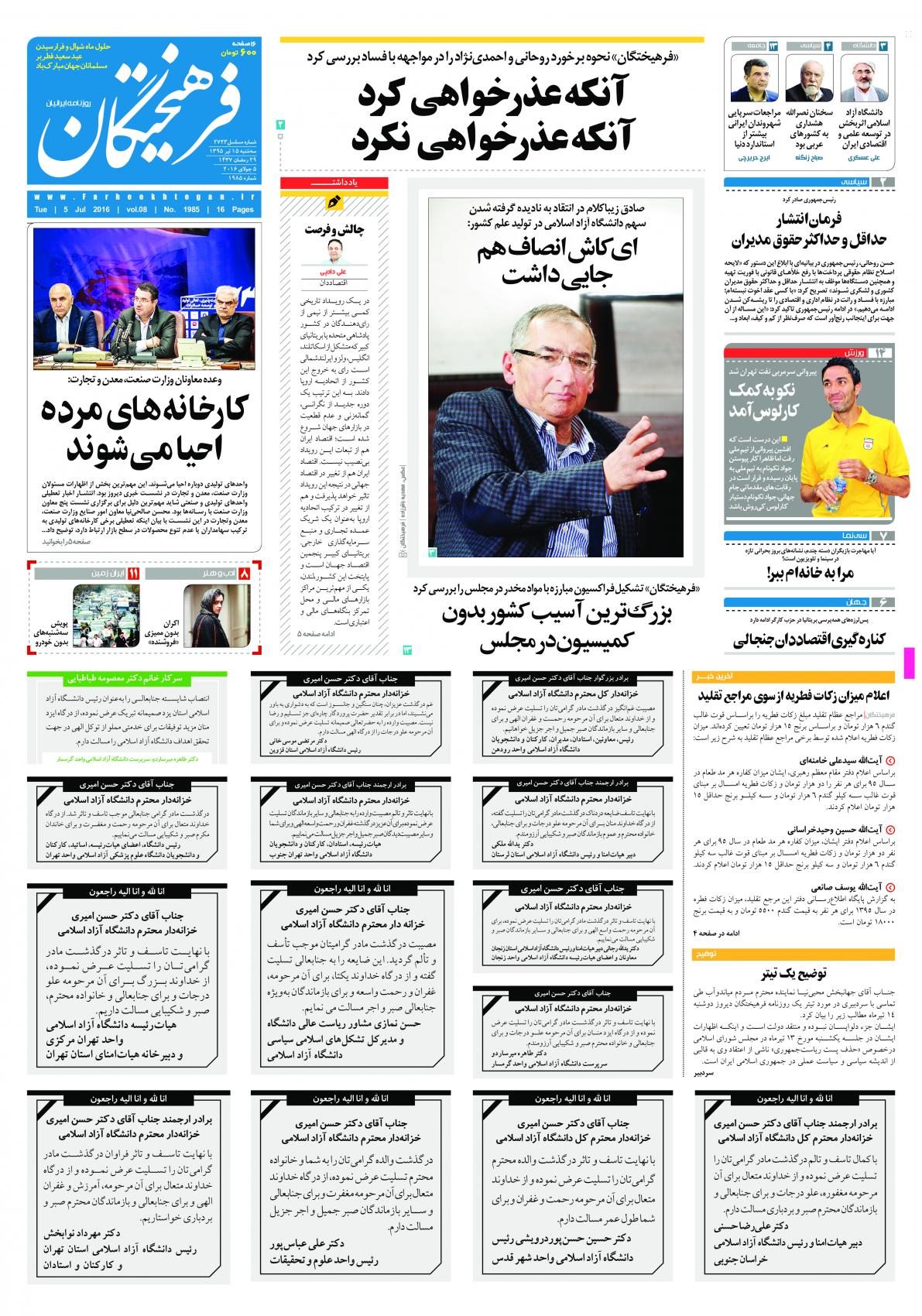 سه شنبه ۱۵ تیر ۱۳۹۵