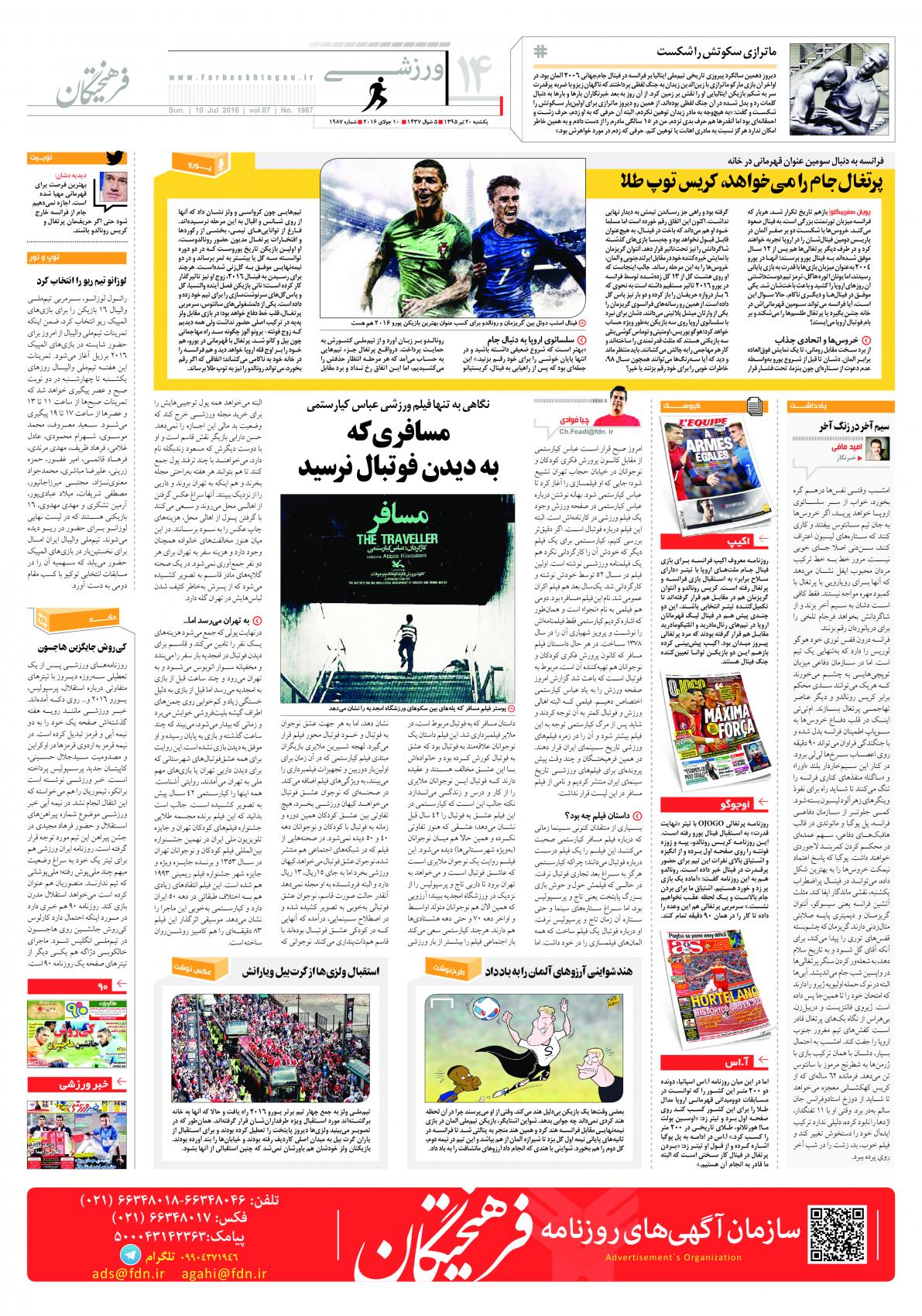 یکشنبه ۲۰ تیر ۱۳۹۵
