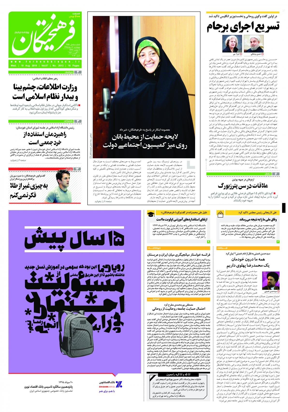 چهارشنبه ۲۰ مرداد ۱۳۹۵