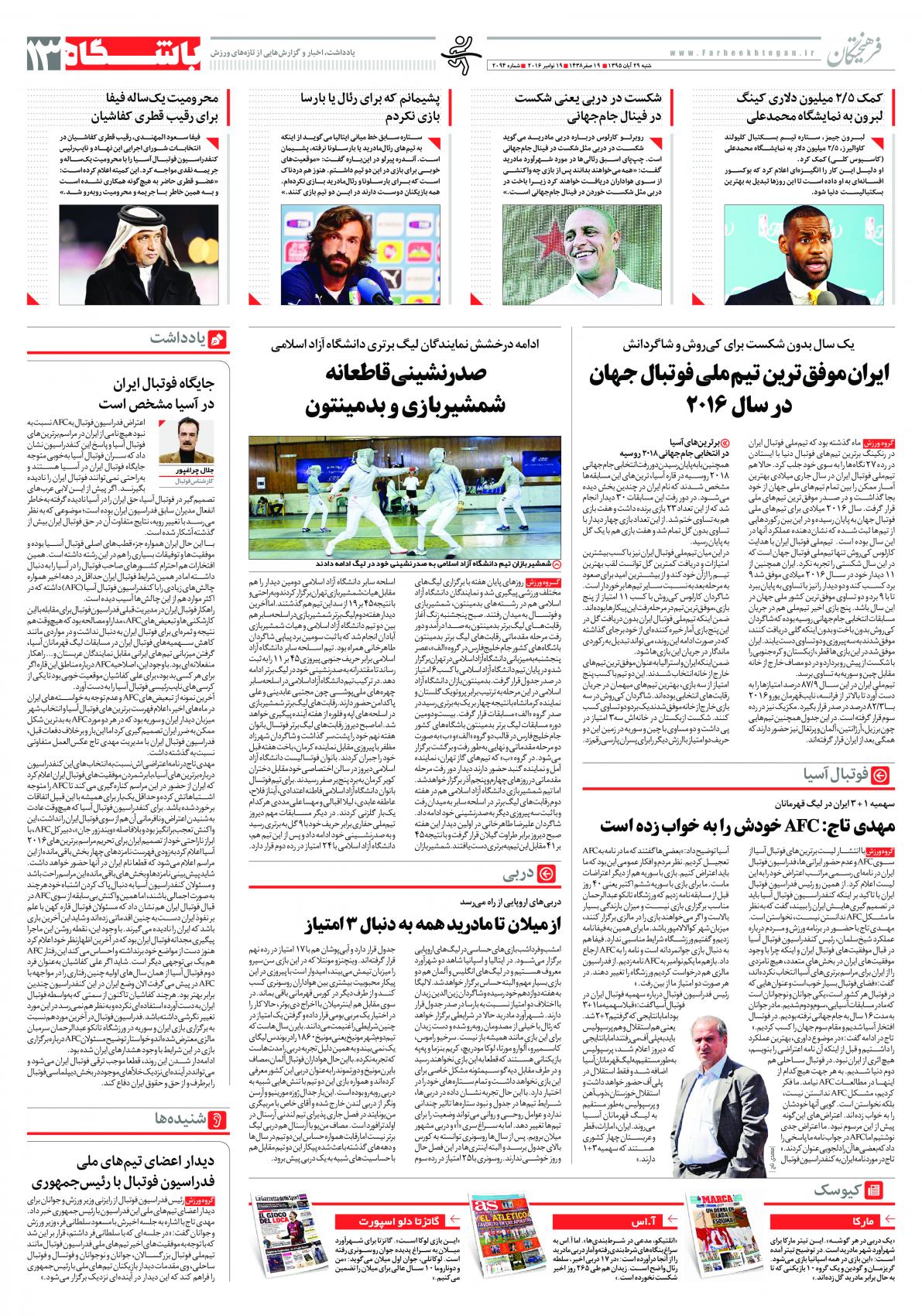 شنبه ۲۹ آبان ۱۳۹۵