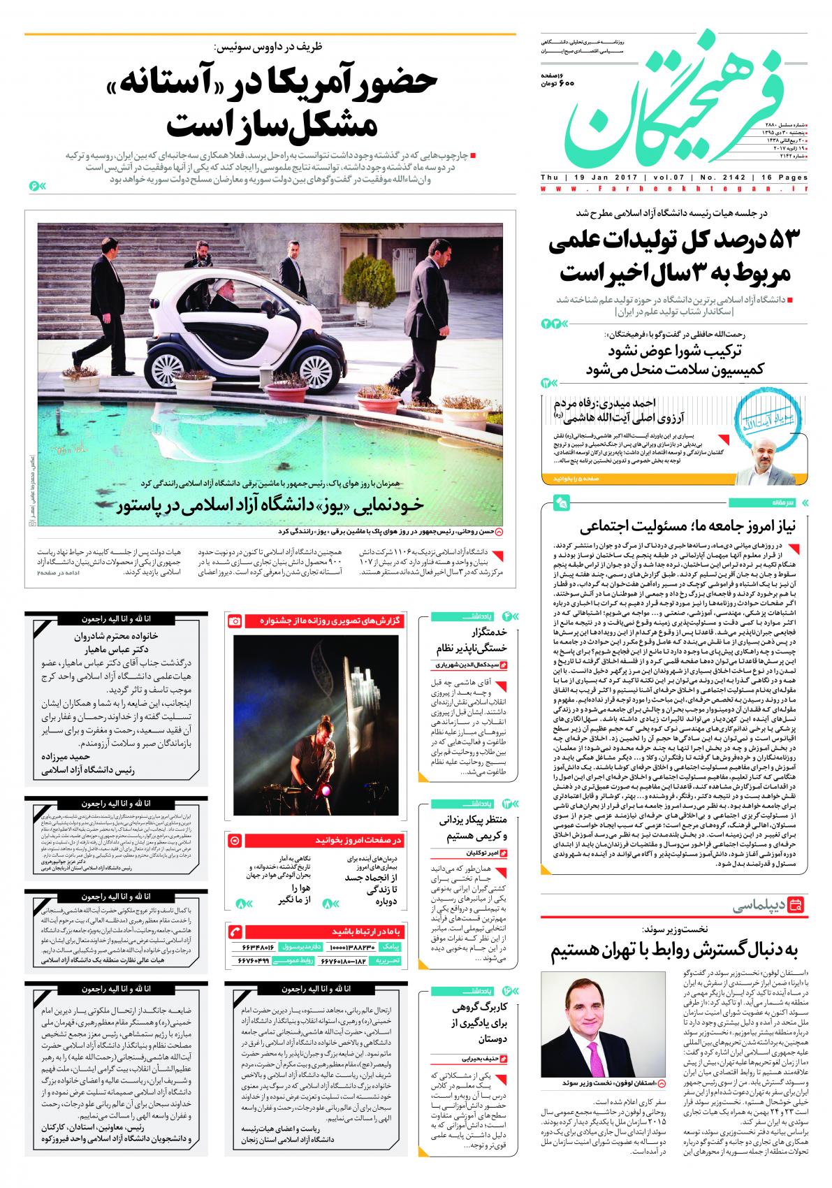 پنجشنبه ۳۰ دی ۱۳۹۵