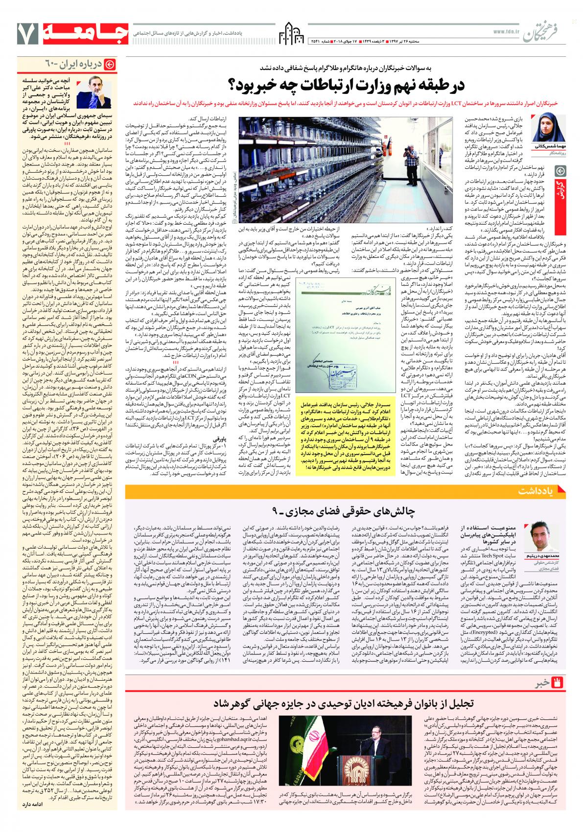 سه شنبه ۲۶ تیر ۱۳۹۷