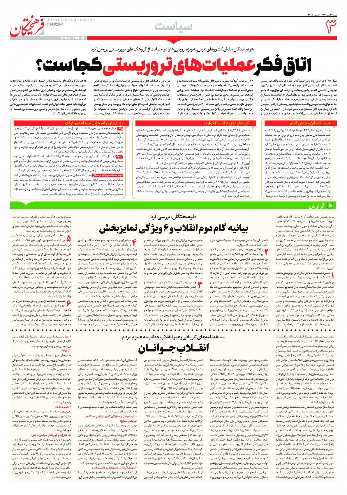 شنبه ۲۷ بهمن ۱۳۹۷