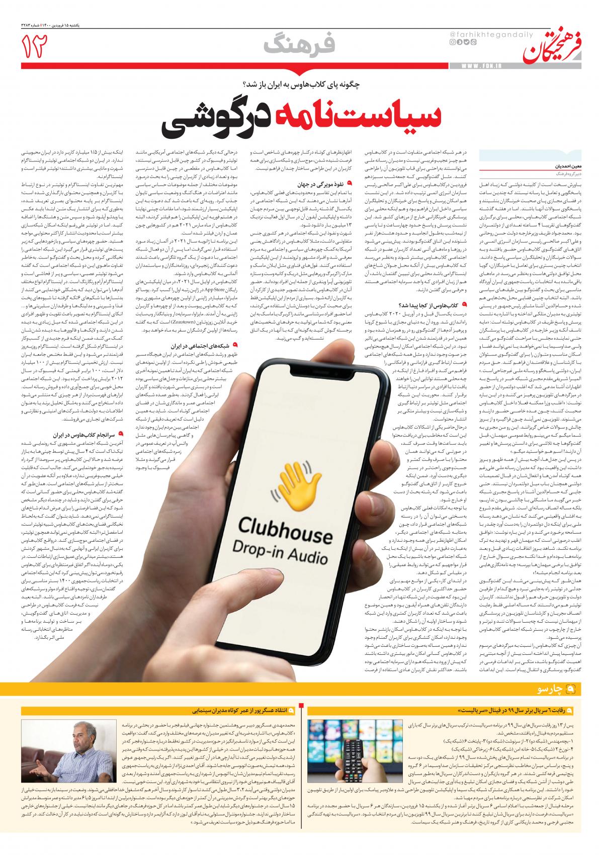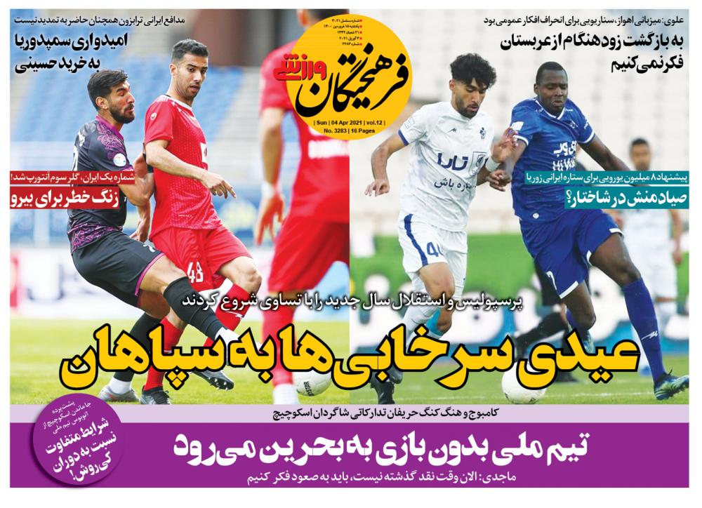 یکشنبه ۱۵ فروردین ۱۴۰۰