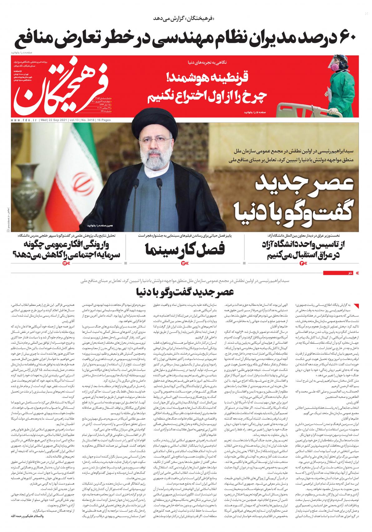 چهارشنبه ۳۱ شهریور ۱۴۰۰