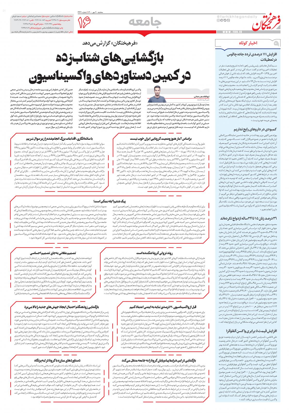 سه شنبه ۲۰ مهر ۱۴۰۰