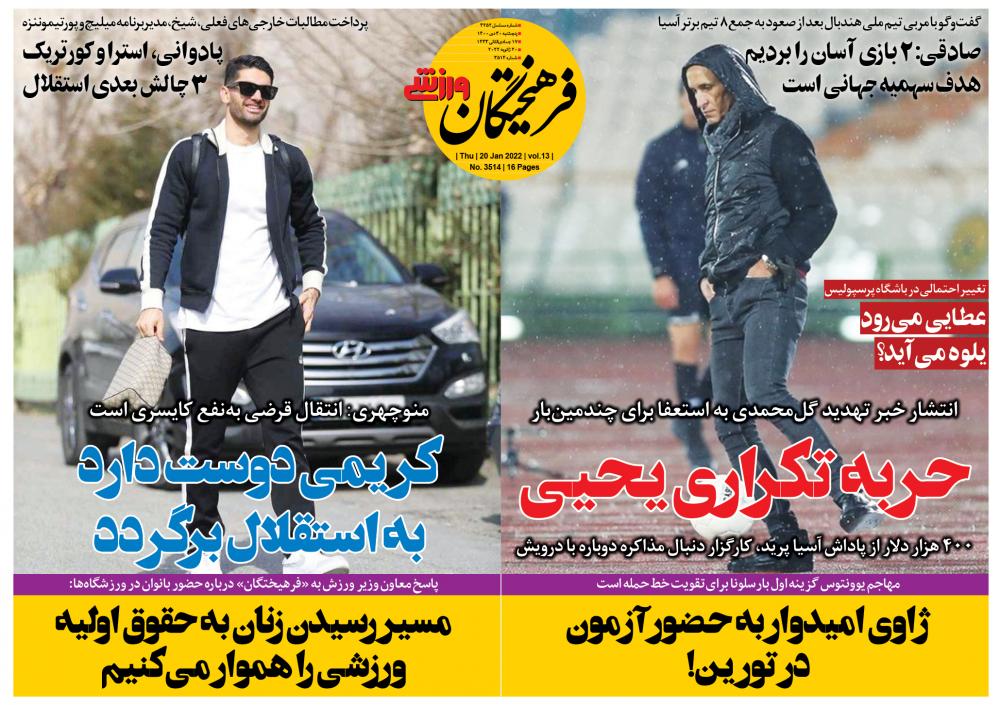 پنجشنبه ۳۰ دی ۱۴۰۰