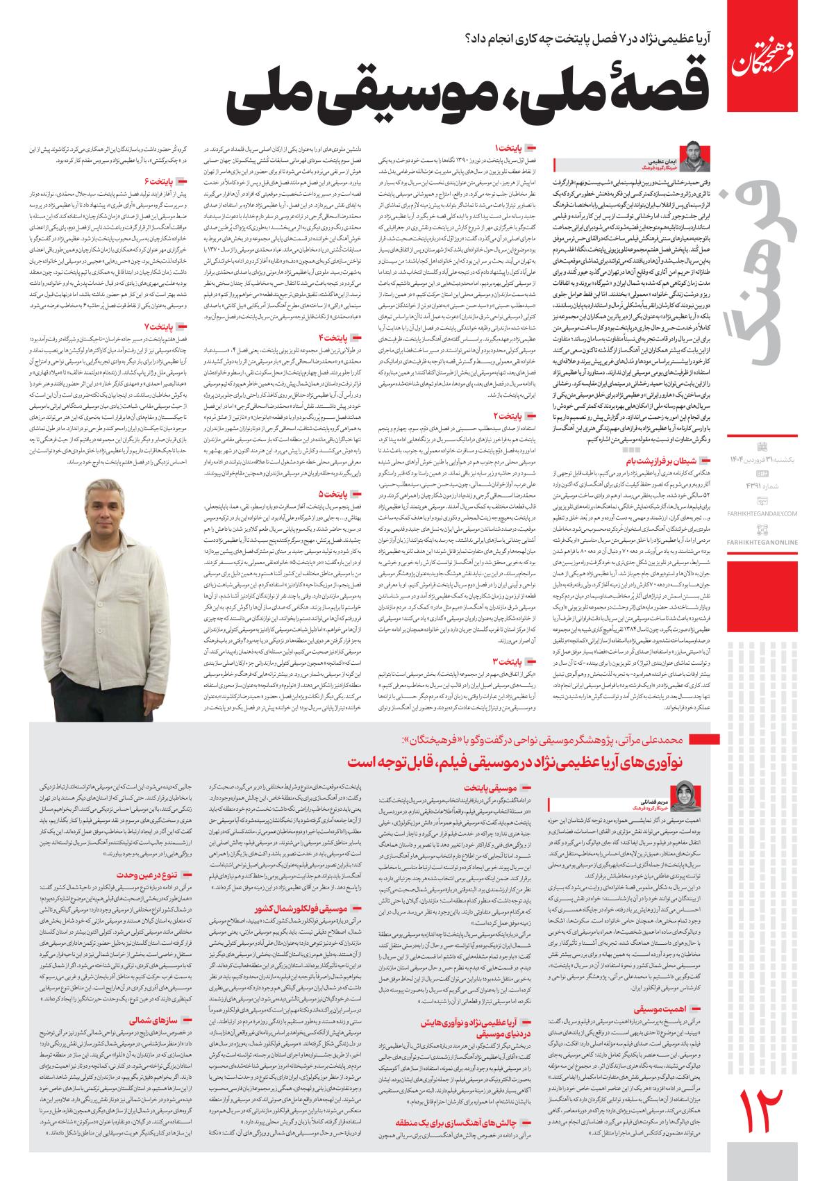 یکشنبه ۳۱ فروردین ۱۴۰۴