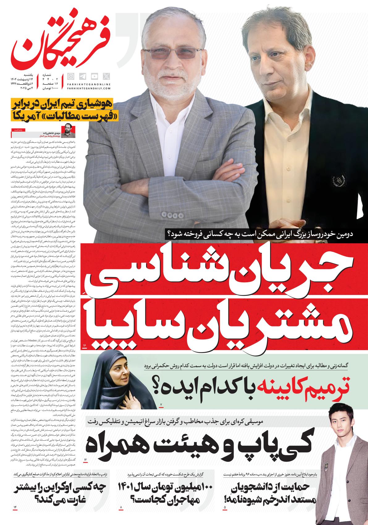 یکشنبه ۱۴ اردیبهشت ۱۴۰۴