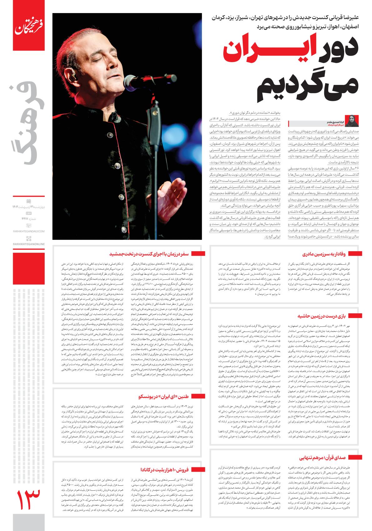 چهارشنبه ۳۱ اردیبهشت ۱۴۰۴