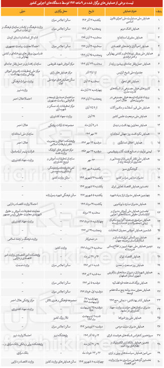 بررسیها نشان میدهد تا سال 1400 در بخش اول و دوم پیوست شماره 4 لایحه بودجه که مربوط به اعتبارات هزینهای دستگاههای اجرایی برحسب برنامه، خروجی و بهای تمامشده است، لیست تعداد و هزینههای همایشها، رویدادها، کنفرانسها و سمینارها درج میشد. اما در سال 1401 و 1402 بهیکباره عنوان همایش از پیوست شماره چهار بودجه سالانه حذف شد. هرچند در آن زمان نیز میزان هزینههای برگزاری همایشهای دستگاههای دولتی چندان شفاف و دقیق نبود اما به هر حال این آمار ولو مبهم در پیوست چهارم بودجه درج میشد. بررسیهای «فرهیختگان» تنها از اخبار برگزاری همایشهای دستگاههای دولتی در سال جاری تا پایان آذر نشان میدهد در طی این مدت بالغ بر 52 همایش دولتی در کشور برگزار شده است. برخی از این همایشها عملا همچون همایش پرسروصدای اخیر در شیراز، دورهمی مدیران دستگاههای دولتی بوده است. مدیران مدارس سراسر کشور، همایش معاونان بهداشت و درمان، چهارمین همایش مدیران تراز بنیاد شهید، همایش مدیران مبارزه با پولشویی، ششمین همایش آموزشی مجریان انتخابات، نخستین همایش ملی آموزش مدیران و کارشناسان حقوقی دستگاههای اجرایی، دومین همایش ملی جهاد تبیین و اطلاعرسانی هنرمندانه، همایش شهرداران و دبیران ستادهای بازآفرینی شهری استان اصفهان، همایش بزرگداشت هفته قوه قضائیه، همایش کادر بهداشتی- درمانی حج ۱۴۰۲، مدیران سازمانهای حراست وزارت جهاد کشاورزی در مشهد، همایش مدیران دولت مردمی، نخستین گردهمایی سراسری مدیران وزارت امور اقتصاد و موارد اینچنینی از این دورهمیها هستند.